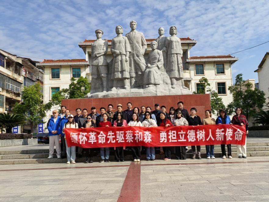在蔡和森同志纪念馆内,教职工们通过观看珍贵实物、图文资料与历史影像,深入了解了蔡和森同志从求索真理到献身革命的奋斗历程,感悟其坚定的理想信念与崇高的革命精神。在庄严肃穆的蔡和森同志雕像前,全体党员面向党旗,重温入党誓词,进一步坚定了为党育人、为国育才的初心使命。